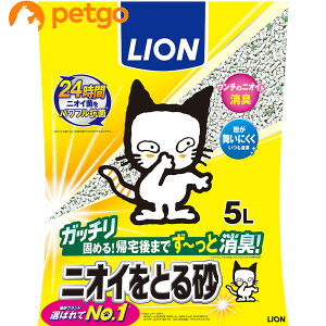 メーカー:ライオン軽くて持ち運びしやすく、そそぎやすい!ライオン ニオイをとる砂 軽量タイプ 5L対象猫特長●「ニオイをとる砂」(ガッチリ固めるタイプ)より1Lあたりの重量を約4割軽量化しました。 ●オシッコやウンチのイヤな