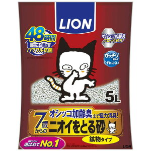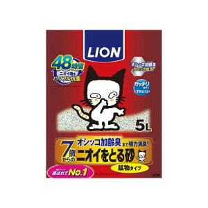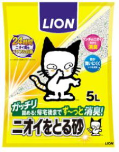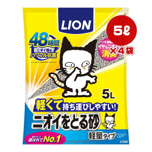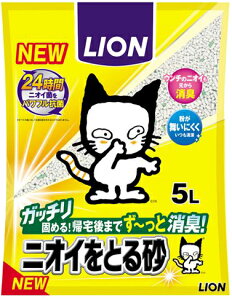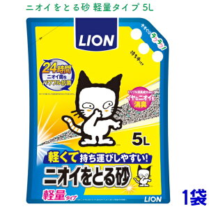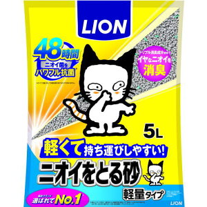 リニューアルに伴いパッケージ・内容等予告なく変更する場合がございます。予めご了承ください。 名 称 ニオイをとる砂 軽量タイプ 内容量 5L 特 徴 ◆持ち運びしやすく、トイレのお手入れもますます手軽に。 ◆ライオン「ニオイをと