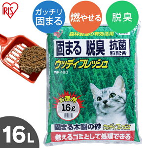 燃えるゴミとして処理できる猫砂★ 抗菌粒を配合していますので、「固まる+脱臭」効果が! 木を原料としていますので、、燃えるゴミとして処理が可能です♪●内容量:16L ●材質:木、ベントナイト、抗菌剤 最強翌日配送対象商品に関す