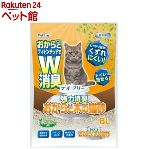 サイズ:1個◆商品名:ペットプロ デオフリー 強力消臭 おからと木の猫砂 6LおからとフィトンチッドでW消臭。しっかり固まりトイレに流せる商品紹介 おからと木(フィトンチッド)が素早く強力にW消臭します。小さくしっかり固まるので1日あ