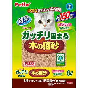 気の成分のフィトンチッドによる消臭効果があります。可燃ゴミとしても処理できます。 ペティオ ガッチリ固まる木の猫砂 原料 木粉・ベントナイト・高分子吸収体(ポリマー) 原産国 日本 内容量 6L 入