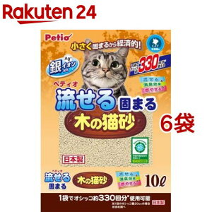 ト用 トイレ砂10L以上 シート150枚以上>ペティオ 流せる固まる木の猫砂 (10L*6袋セット)【ペティオ 流せる固まる木の猫砂の商品詳細】●すばやく小さく固まり、水洗トイ