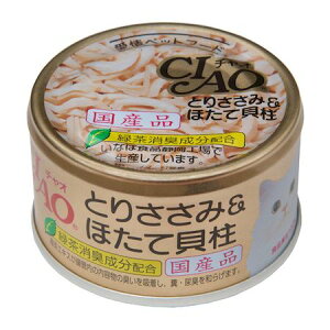 【商品説明】●とりささみにうまみが豊富なほたて貝柱を加えました。豊かな香りが嗜好性を高めます。●緑茶消臭成分配合によりフン・尿臭が和らぎます。●原材料:鶏肉(ささみ)、ほたて貝柱、でん粉、増粘多糖類、増粘剤(加工でん粉)、