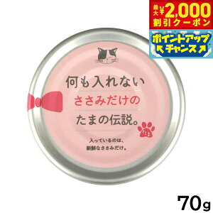 人が食べても安心!猫缶製造50年の国産ごはん。ねこちゃんの大好きなささみを使用し、贅沢に仕上げました。余計なものは何も入れない安心な国産です。商品名何も入れないささみだけのたまの伝説 キャットフードブランドSYIサンヨー原材