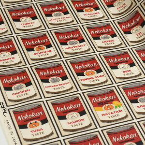 幅110cm 手芸 ハンドメイド 生地 柄 コットン ビニール加工 ビニールコーティング 防水加工 入園入学 猫缶 ネコ缶 ねこ 猫 ネコ ニャンコ
