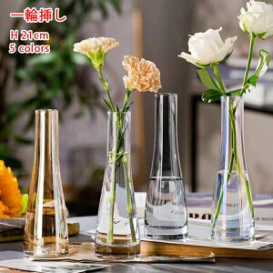 花瓶 ガラス 一輪挿し おしゃれ 花器 フラワーベース 透明 H21cm