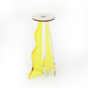 木とアクリルのパーツを組み立ててできる一輪挿し。他にはないユニークな形と色で、飾る花との色遊びも楽しめます。トップの丸いプレートは木とアクリルの2種類セットなので、花の色や気分によって1枚で使ったり、2枚重ね付けしたりで