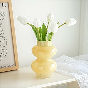 花瓶 ガラス ダブルボール 高さ18cm 一輪挿し おしゃれ がびん ガラスベース 花器 水栽培 花びん 生け花 造花 贈り物 玄関、部屋、窓辺に(ミルキーイエロー)ブランド色ミルキーイエローモデル商...