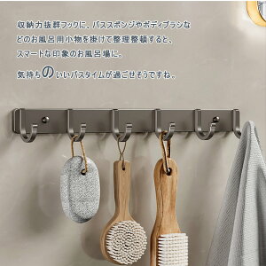 収納力抜群フックに、バススポンジやボディブラシなどのお風呂用小物を掛けて整理整頓すると、スマートな印象のお風呂場に。気持ちのいいバスタイムが過ごせそうですね。お掃除道具をフックに掛けておくとサッと手に取りやすく...