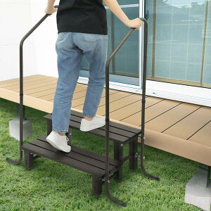 ■手すり付き アイアンステップ 2段 段差解消 玄関 土間 デッキ 段差 ステップ 天然木無垢材 エクステリア ペット ペット用 犬 ステップ台 踏み台 庭■ 天然木無垢材とスチールを使用したおしゃ...