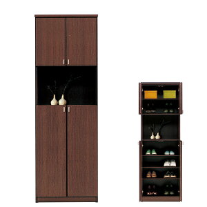 【商品名】 ハイタイプ シューズボックス 下駄箱 幅60cm ブラウン 木製 オートヒンジ プラ棚 日本製 Angel エンジェル 完成品 開梱設置 【ジャンル・特徴】 Angel エンジェル シューズラック...