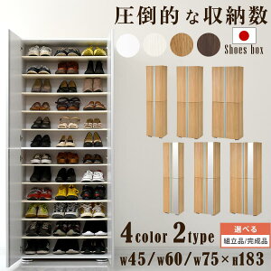 サイズ 幅750×奥行き405×高さ1802mm 仕様 表面材/ポリエステル化粧合板・強化紙化粧合板(木目) 側面材/プリント化粧合板 内装材/プリント化粧合板 可動棚10枚 収納数/40足(婦人靴) 日本製 F☆☆☆☆ 搬送状態 完...