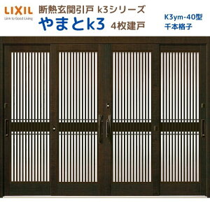 断熱玄関引戸(引き戸) 光悦K3 4枚建戸 ランマ無し 15型(木連格子) LIXIL/TOSTEM