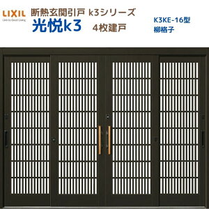 断熱玄関引戸(引き戸) 光悦K3 4枚建戸 ランマ付き 11型(千本格子中割れ) LIXIL/TOSTEM