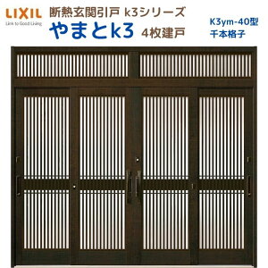 断熱玄関引戸(引き戸) 光悦K3 4枚建戸 ランマ付き 14型(横格子) LIXIL/TOSTEM