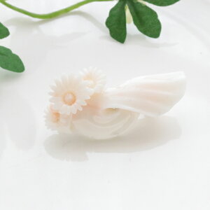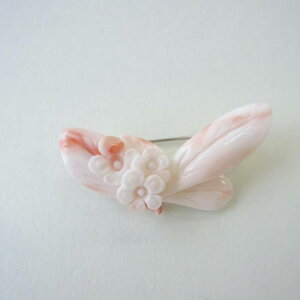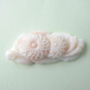 深海珊瑚 珊瑚:約43×21×8mm 重さ:約8.7g(金具込) メッキ ◆深海からの贈り物 宝石珊瑚 ホワイト地に淡いピンク色が混ざり合ったピンクサンゴ(深海珊瑚)に、丁寧に手彫りされたお花が愛らしいブローチです...
