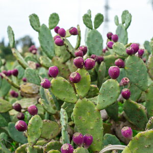 ●品種特性 丸い団扇をつなげたような姿や、うさぎの耳のような形が可愛らしいウチワサボテンの の実はメキシコでは日常的に食べられているビタミン、ミネラル豊富な栄養価の高いフルーツです。黄色の花を咲かせた後、卵型の赤色の実