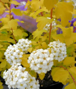 コデマリ 黄金葉 (こでまり、小手毬) 3寸ポット苗 バラ科 落葉低木 開花時期:春(4月〜5月頃) 半日陰の場所でも良く育ち、小さな手毬状の白い花がとても美しい落葉低木です。 本品種は、新芽が黄金色〜ライムグリーンへ変化すると