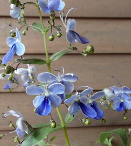 ブルーエルフィン(クレロデンドロム・ウガンデンセ) 別名;マダムバタフライ、ブルーウィング 5号鉢植え *枝が暴れている場合があります。 クマツヅラ科クレロデンドルム(クサギ)属 熱帯アフリカ原産 非耐寒性常緑ツル性低木 開