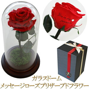 ガラスドーム 1本のバラ メッセージローズ プリザーブドフラワー 想いを込めた1本のバラを、ガラスドームに閉じ込めたバラの贈り物。 バラはプリザーブドフラワーなので、綺麗な状態を長く保てます。 1本のバラに想いを込めて、プロポ