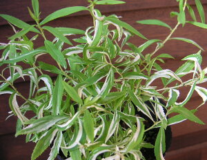 斑入葉雪柳(斑入り葉ユキヤナギ) *新葉が特に綺麗ですが、夏場は斑が抜けて緑になります。 10センチポット苗 バラ科 落葉低木 開花時期:3月〜4月(白花) 細い葉に美しい斑が入るユキヤナギです。 日当たりが良く水はけのよい場所を