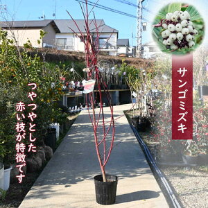 サンゴミズキはミズキ科の仲間で落葉低木です。落葉した後の枝がサンゴのように赤いことから、 この名前がつけられたと言われています。又、白い実をつけるので「シラタマミズキ」と 呼ばれることもあります。 寒さが増してくるにつれ