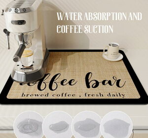 【水切りマット】素材:表面:PUレザー、中材:珪藻土、裏材:ゴム。珪藻土が含まれて、吸水力が抜群です。食器を乾燥しやすいです。吸水した水分を素早くマット内に拡散。大判サイズなのでカップ、お皿もらくらく置くことができます