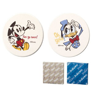 水気を吸う珪藻土コースターに キャラクターをデザイン 【商品説明】 ●サイズ:φ100×8mm ●化粧箱入り(箱サイズ105×105×15mm) ●材質:珪藻土・パルプ・石灰 ●柄:ミッキー・ドナルドの2柄取混ぜ...