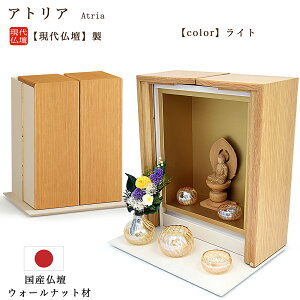 現代仏壇 アトリア ライト/ダーク 扉が独創的なコンパクト仏壇 ■サイズ W340×H390×D258(mm) ■材質 ナラ/ウォールナット、ホワイトオーク ■仕上 ウレタン塗装、金色塗装 ...