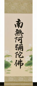 小型掛軸 現代(家具調)仏壇用掛け軸です。 南無阿弥陀仏 ※2枚目画像のスタンドは別売り 3枚目画像は飾り例 ※特殊工芸作品:特殊工芸作品とは掛軸専門作家が情熱をこめて描き上げた作品を最新デジタル技術を駆使し、より美しく仕上げた作品<b