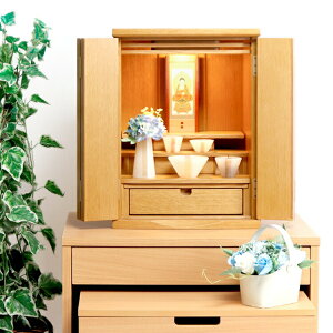 ナチュラルモダンなリビングに合わせやすい明るくおしゃれな仏壇です。 シンプルでありながら、木の温もりが感じられます。便利なスライド式須弥壇を装備。