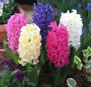 ヒヤシンスの球根、5色各1球の5球セットです。紫、ピンク、赤、白、黄色の5色です。水栽培にも使える大きな球根です。土に植え込んでもボリューム満点のお花を楽しめます。来春の3月頃から咲き始めます。11月頃までに植え付けて下さい...