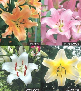分類:ユリ科 規格:球根 袋詰め 開花時期:6月〜9月 草丈:成長時 約40cm〜200cm(配送時の大きさではありません。また品種により若干異なります) 楽しみ方:ガーデニン...