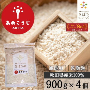 (900g×4袋) 商品説明 国産米100%(秋田県産米「ぎんさん」)と秋田県が開発したオリジナル麹を使用した、無添加の乾燥米麹です。 従来の麹よりも褐変性が低く酵素力価が2倍と高いのが特徴で、より