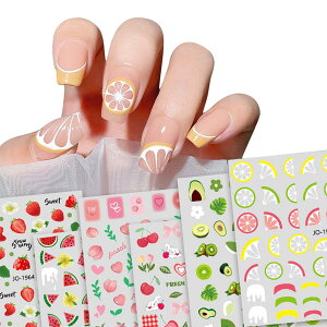 商品情報商品の説明夏らしい爽やかなフルーツデザインのネイルシールセット。レモン、チェリー、イチゴ、スイカなど、可愛らしいフルーツモチーフが6枚セットになっています。薄型で扱いやすく、爪に自然にフィットする設計です。貼る