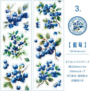 大人気のダイカットタイプのクリアテープです 型抜きあり、初心者の方にも気楽に使えます りんごやいちごなどのフルーツのイラストが可愛い 幅広60mm、存在感ありのワイドタイプ 耐水PET素