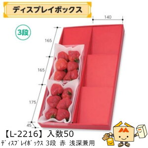 商品名 ディスプレイボックス 赤 浅深兼用 3段 品番 L-2216 サイズ(mm) 外寸:300×520×45内寸:285×510 ケース入数 50 重量 305g 材質仕様 E段本体・仕切 メーカー 株式会社ヤマニパッケージ 販売...