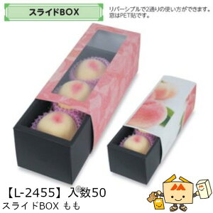 商品名 スライドBOX もも 品番 L-2455 サイズ(mm) 110×330×105 ケース入数 50 重量 228g 材質 スリーブ/紙(窓/PET)、身/E段 メーカー 株式会社ヤマニパッケージ 販売者 株式会社梶本 〜中身が...