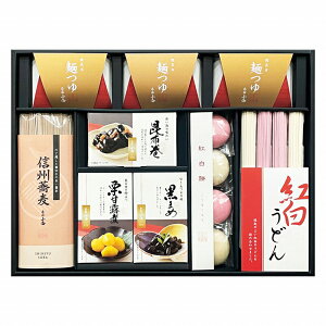 ●商品内容 信州蕎麦160g、讃岐うどん180g、昆布巻85g、黒まめ50g、栗甘露煮40g、麺つゆ(15g×2袋)×2 ●パッケージサイズ:箱サイズ:235×405×32 ●賞味期限:製造後360日 ギフト対応※商品は十分にご用意し...