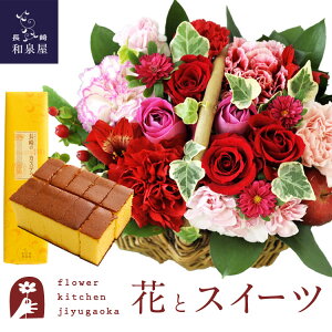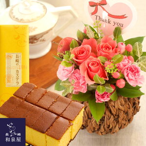 あすつく。送料無料。画像配信有。 【商品サイズ】旬のアレンジメント「ピンク」…高さ約50cm×幅約32cm ※花材によってサイズが変わることがございます。 【長崎カステラ蜂蜜 0.5号 10切入】 内容量:1
