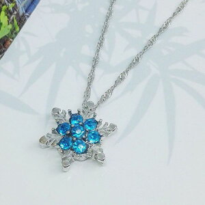 雪の結晶をモチーフにしたデザインは、冬の季節感を洗練された形で表現しています。 中心に配置されたのクリスタルは、まるで冷たい空気の中で光を反射するかのようにキラキラと輝き、 シルバーチェーンとのコンビネーションが一層の