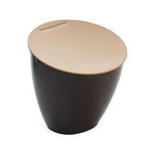 ポイント卓上サイズスタイリッシュなデザインのゴミ箱です。手のなかに収まるくらいの小ぶりなサイズ。少し斜めに向いてスッキリとしたフォルムが印象的なごみ箱。中から見えやすく、ゴミなどを入れ安いので。付属の蓋は開けっ放しに