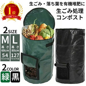 ■商品名 コンポストバッグ(サイズ M・L) ■カラー グリーン/ブラック ■商品説明 生ごみ処理コンポスト 生ごみ・落ち葉を有機堆肥に 小さくコンパクト収納 初心者も安心!簡単設置! 生ごみ・落ち葉が有機肥料になる! ゴミを減らせる