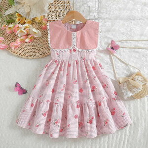 送料無料 花柄×ピンクでガーリーコーデ♪子どものワンピース