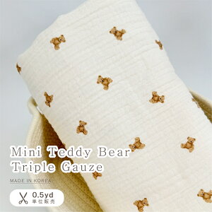 韓国市場より直接買い付けしております。 小さめサイズのテディベアがぎゅっと詰まった、愛らしいデザインのガーゼ生地です。 ふんわりと柔らかく、