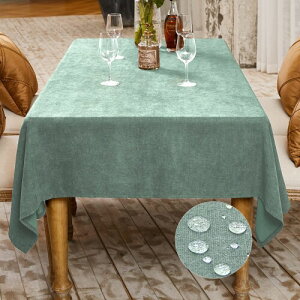 BALCONY&FALCON テーブルクロス 撥水 スエード調 高級 布 洗えるテーブルクロス ベルベット 北欧 無地 類麻 おしゃれ 防汚 防油 高耐久 140x240cm 長方形 ライトグリーン ...