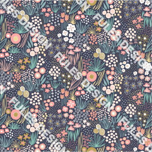 【総柄プリント生地 ダブルスエード生地】 組成:ポリエステル100% プリント巾(有効巾):151cm、生地巾:165cm 【小花柄】 小花31:黒地をベースに、カラフルな小花がリズミカルに広がる、昭...