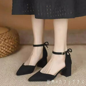 サンダル 2色 革靴 靴 シューズ チャンキーヒール ハイヒール ポインテットゥ ベルト バックル スエード エレガント 可愛い 大人可愛い きれいめ シンプル カジュアル シック コンサバ 華やか 大人...