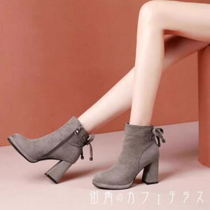 歩きやすい太ヒールでしっかり盛れるから美脚、足長効果は優秀だ!■ 上品の生地で リッチ感を加えたこだわりたっぷりのスエード調ショートブー