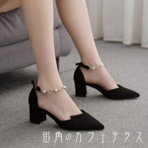 パンプス 2色 靴 シューズ チャンキーヒール ローヒール ポインテットゥ ベルト バックル 飾り スエード エレガント 可愛い 大人可愛い きれいめ シンプル カジュアル シック コンサバ 華やか 大人...